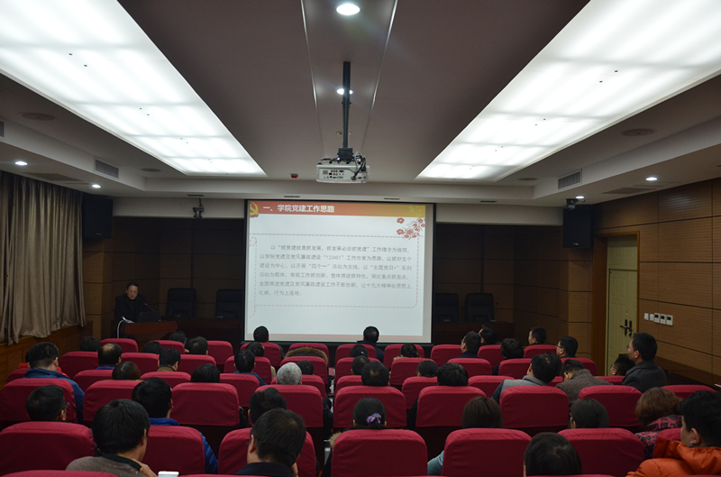 12月22日下午4点,bat365中文官方网站党委在学科一号楼报告厅成功举办了“2017年度bat365中文官方网站党建暨‘四个一’活动总结表彰大会”。bat365中文官方网站全体教工党员、入党积极分子、部分教师代表参加了此次会议。