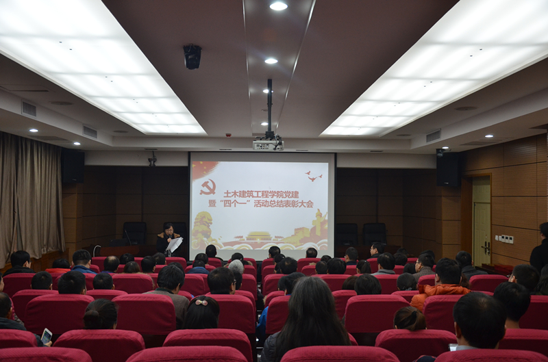 首先,院党委副书记、副院长赵钦宣读了学院开展“四个一”活动以来,先进支部和个人的《表彰决定》。“四个一”暨“一名教师一个楷模、一个党员一面旗帜、一名干部一个标杆、一个支部一座堡垒”。在全年的活动中,各支部积极组织,全院教工积极参与,经学院党委对各支部年底工作的汇报考核,最终决定授予工程管理系党支部、工程力学系党支部、土木工程系党支部“先进党支部”荣誉称号,姜仁贵等6名同志“优秀共产党员”荣誉称号,王砚等6名同志“先进党务工作者”荣誉称号,潘秀珍等5名同志“师德先进个人”荣誉称号。学院班子成员、院工会主席等为获得表彰荣誉的支部和个人颁发奖牌和荣誉证书。