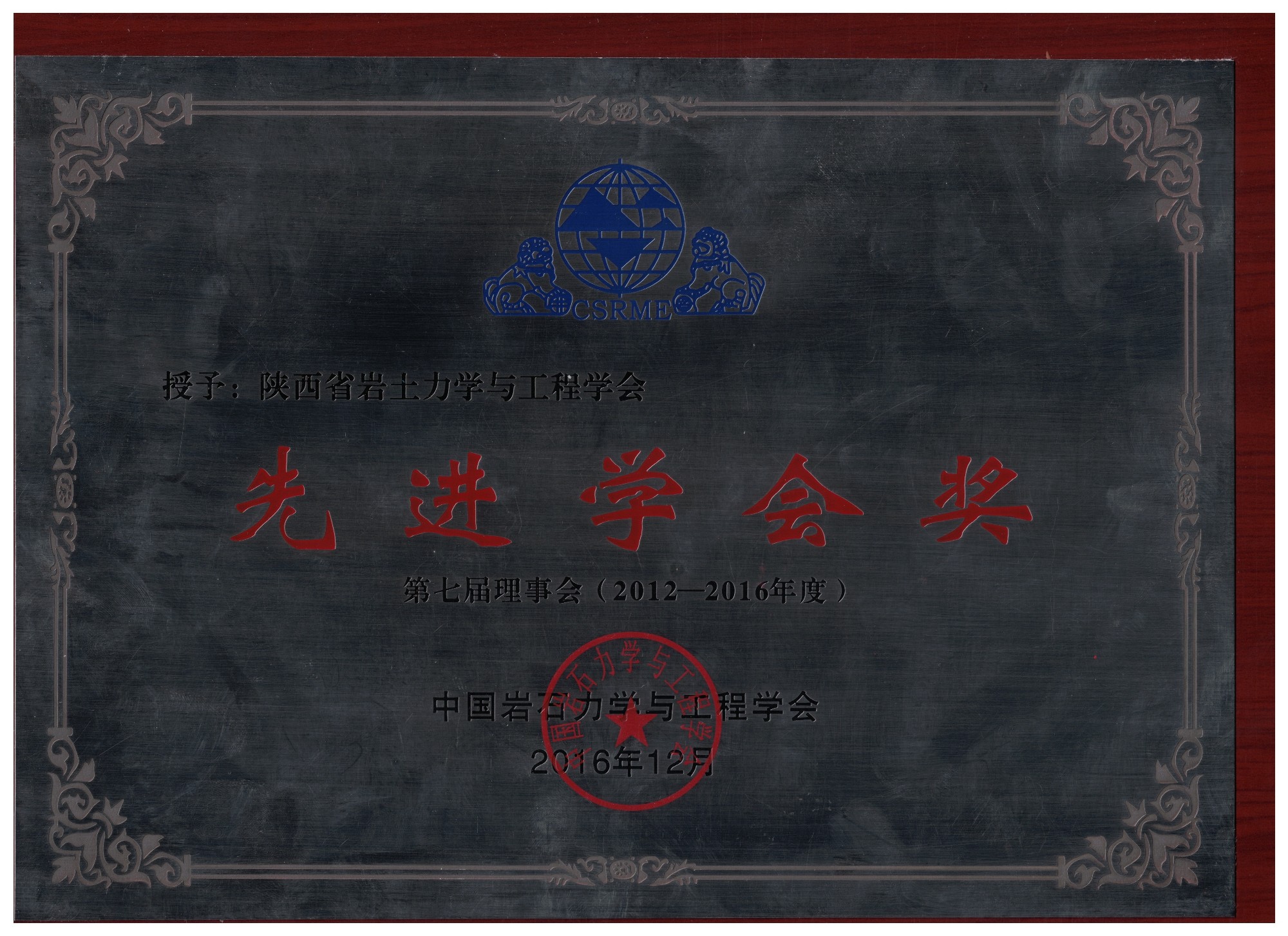 会议期间,中国岩石力学与工程学会对2012~2016年第七届理事会期间各项工作开展优异的省级学会、分支机构以及专业委员会进行了表彰。挂靠在我校的陕西省岩土力学与工程学会因在学术交流、学会网站建议、学会动态创刊、学会优秀学术论文奖以及学会组织建设等方面成绩突出,得到中国岩石力学与工程学会的肯定,被评为中国岩石力学与工程学会第七届理事会先进学会。
