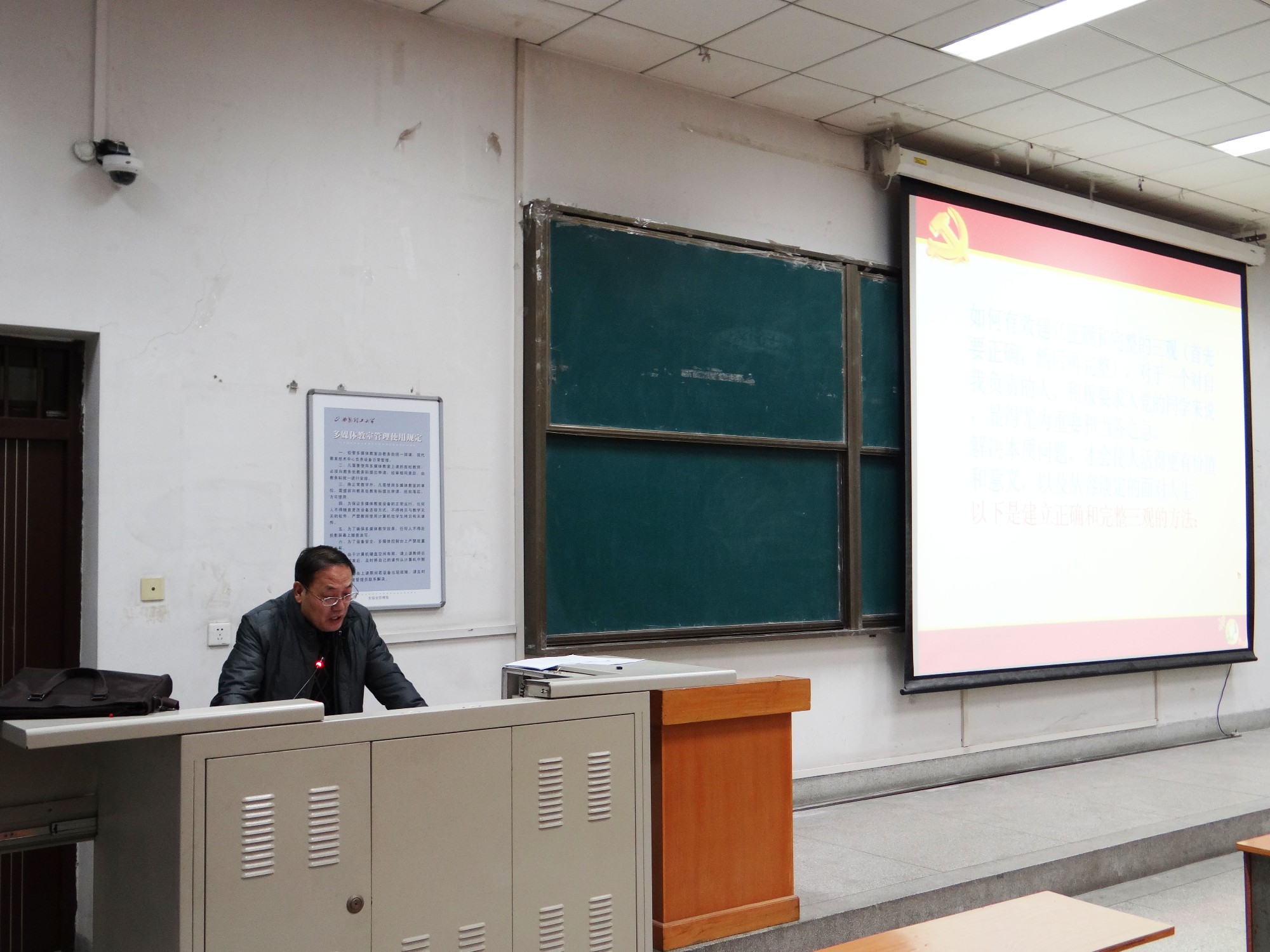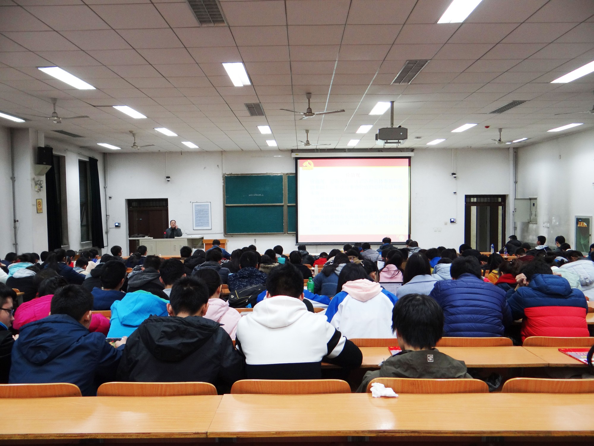 课上,王书记紧扣十八大以来的新思想、新使命,讲到在面对新要求和新规定下做好党员队伍的建设工作,对于实现中华民族伟大复兴的中国梦具有的深远战略意义。结合中国共产党的历史,阐述了中国共产党的诞生,是社会矛盾发展和人民斗争深入的必然结果,是近现代中国史发展的必然产物,是中国人民救亡图存斗争中顽强求索的必然产物,中国共产党的诞生史历史的必然。说明了中国共产党对有意愿入党的大学生的要求,入党必须有积极向上的三观,即世界观、人生观、价值观,此外,还需有准确的信仰方向。王书记希望同学们应时刻以一名入党积极分子的标准要求自己,在党组织的培养和教育下同学们早日加入中国共产党。