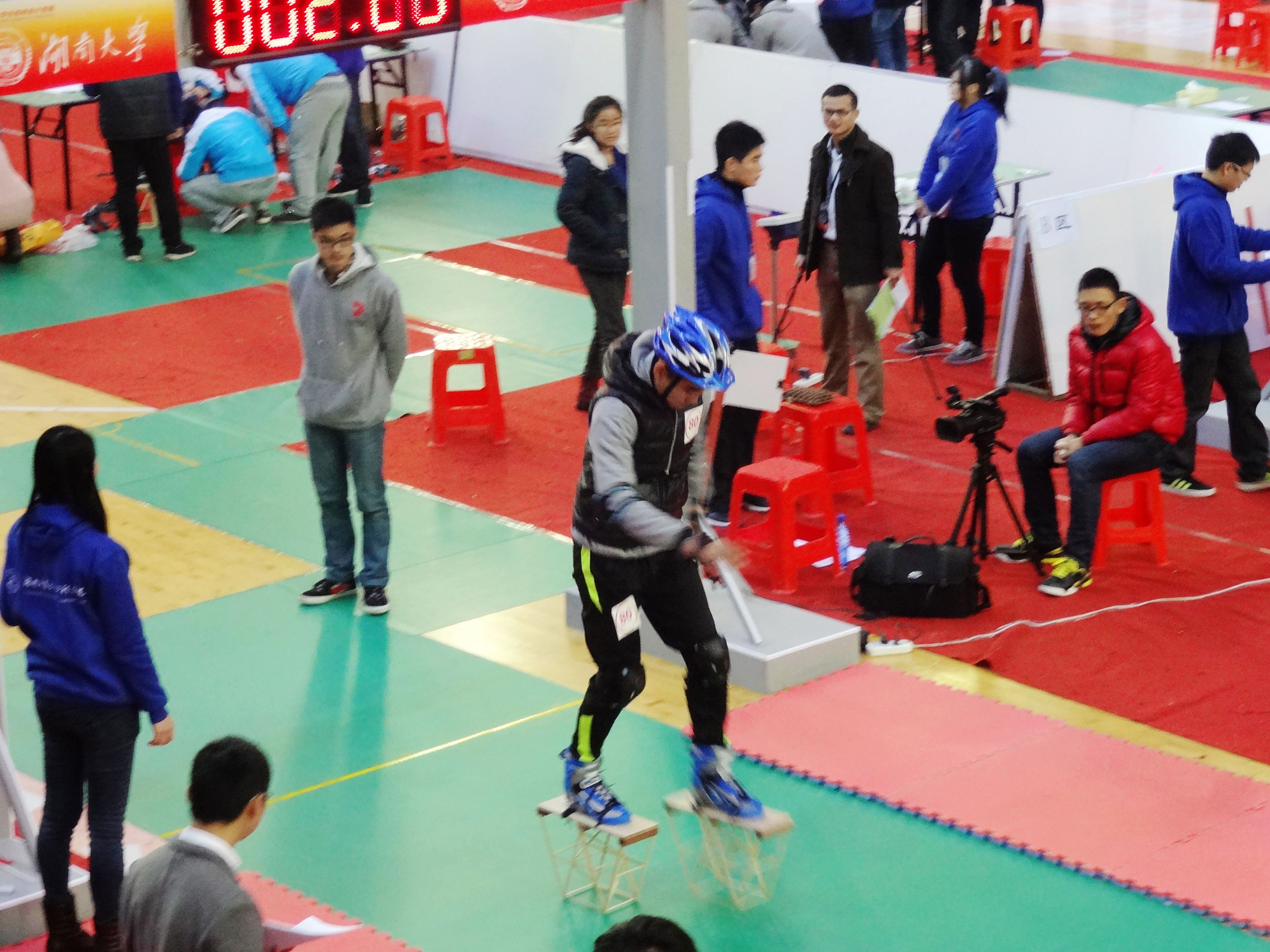 本届竞赛要求选手设计并制作一双竹结构高跷模型,并进行加载测试。测试分静、动态两个环节,静态测试为参赛选手穿上该队制作的竹高跷模型,双脚静止站立于地磅称重台上,计算选手总重除以模型重量;动态测试要求参赛选手穿着竹高跷按规定路线绕标跑或走,计算到达终点的时间。