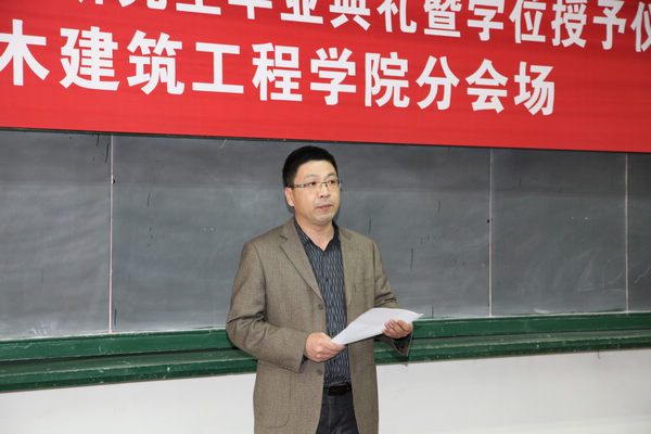 毕业典礼在庄严的国歌中拉开序幕,刘云贺院长首先致辞,他对顺利完成学业的毕业生们表示热烈祝贺,向为学生成长倾注心血的研究生导师们表示诚挚的感谢,并对即将步入社会、踏上人生新征程的研究生们提出了期望,他希望同学们继续弘扬“艰苦奋斗、自强不息”的学校精神,志存高远、热爱生活,勇于创新,脚踏实地,知行统一,不断进取,成为对社会、国家有贡献的人。