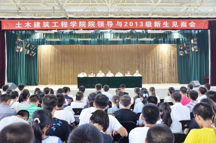 2013年8月25日下午14:30,我院在曲江校区大学生活动中心召开了2013级新生与院领导见面会,院长刘云贺、院党委书记师俊平、副院长范留明、院党委副书记、副院长李红英、院长助理赵钦、院办主任王伟及全体辅导员、2013级新生参加了会议,会议由学工办主任张超主持。