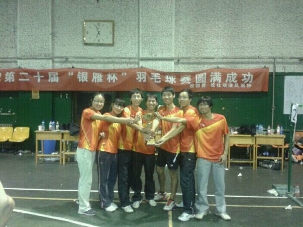 我校“银雁杯”羽毛球赛于11月4、5两天在金花校区室内体育馆举行。我院代表队由万林、马斌、李红英、曹小杉等老师和董静等学生领衔,经过两天的激烈角逐,我院最终夺得团体冠军!