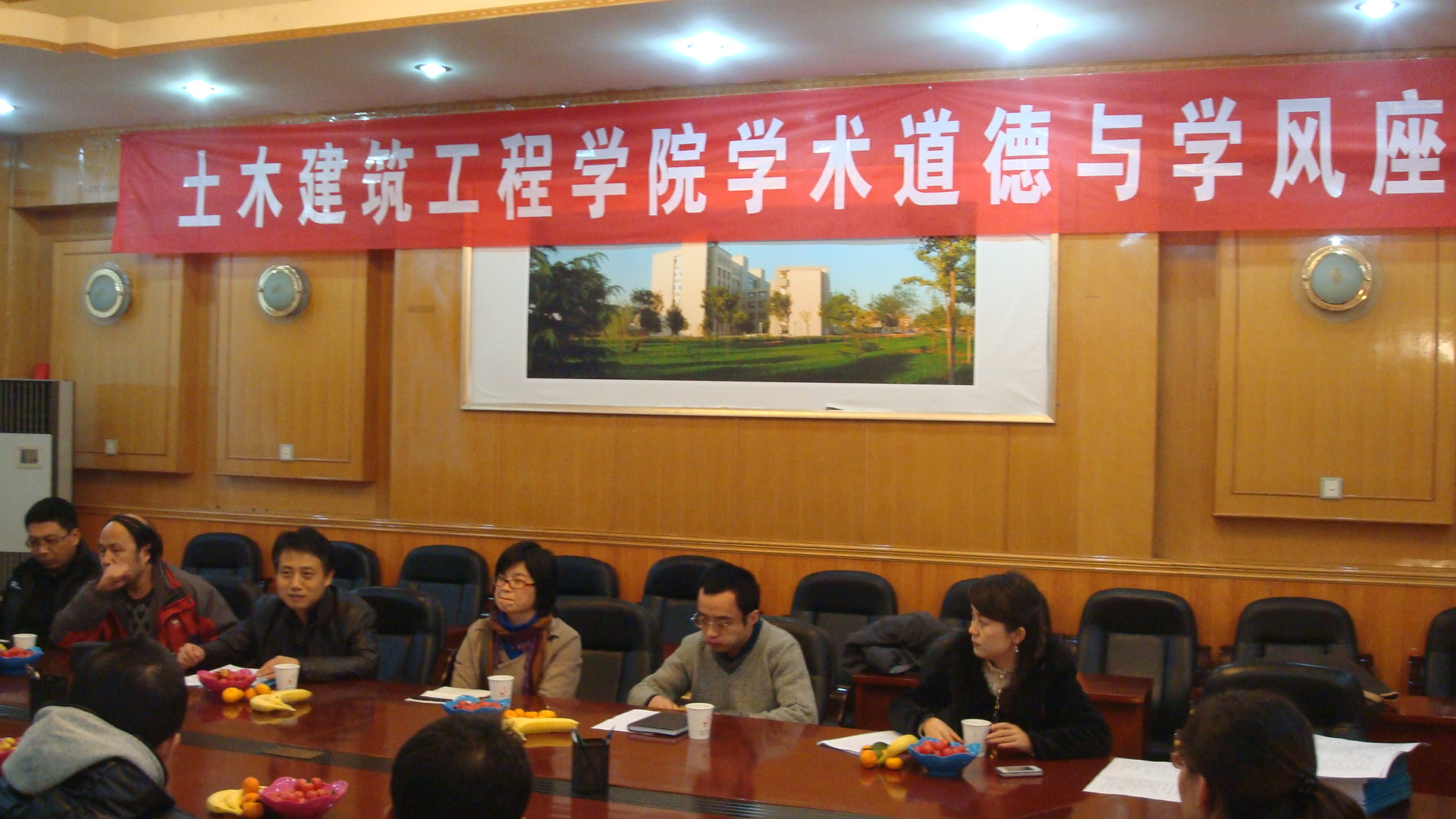 本次座谈会主要围绕深刻认识加强学术道德和学风建设的重要性和紧迫性展开。加强学术道德和学风建设是提高科研水平、提高人才培养质量的必然要求,是引领社会风尚、建设社会主义核心价值体系的必然要求。各位参会老师对此一一发表观点。首先张俊发教授提到学术道德与学风建设存在弊端是一种普遍的社会现象。由于社会上浮躁之风的影响,同学们在学习上就想寻找捷径,导致出现学术道德和学风不良的现象。祖磊教授指出几个违反学术道德的禁区如篡改数据、剽窃、一稿多投及知识产权归属等。陈莉静副教授谈到一些心得,指出大家在写作论文时要从自己论文的应用角度出发,对绪论及某些基本理论要重新归纳总结,不能只字不改的照搬。最后桑国臣老师指出学术道德和学风建设其实是诚实守信的问题,进一步分析了引起学术道德和学风不良的主要原因 ,最后谈到实现论文创新点的三个途径。