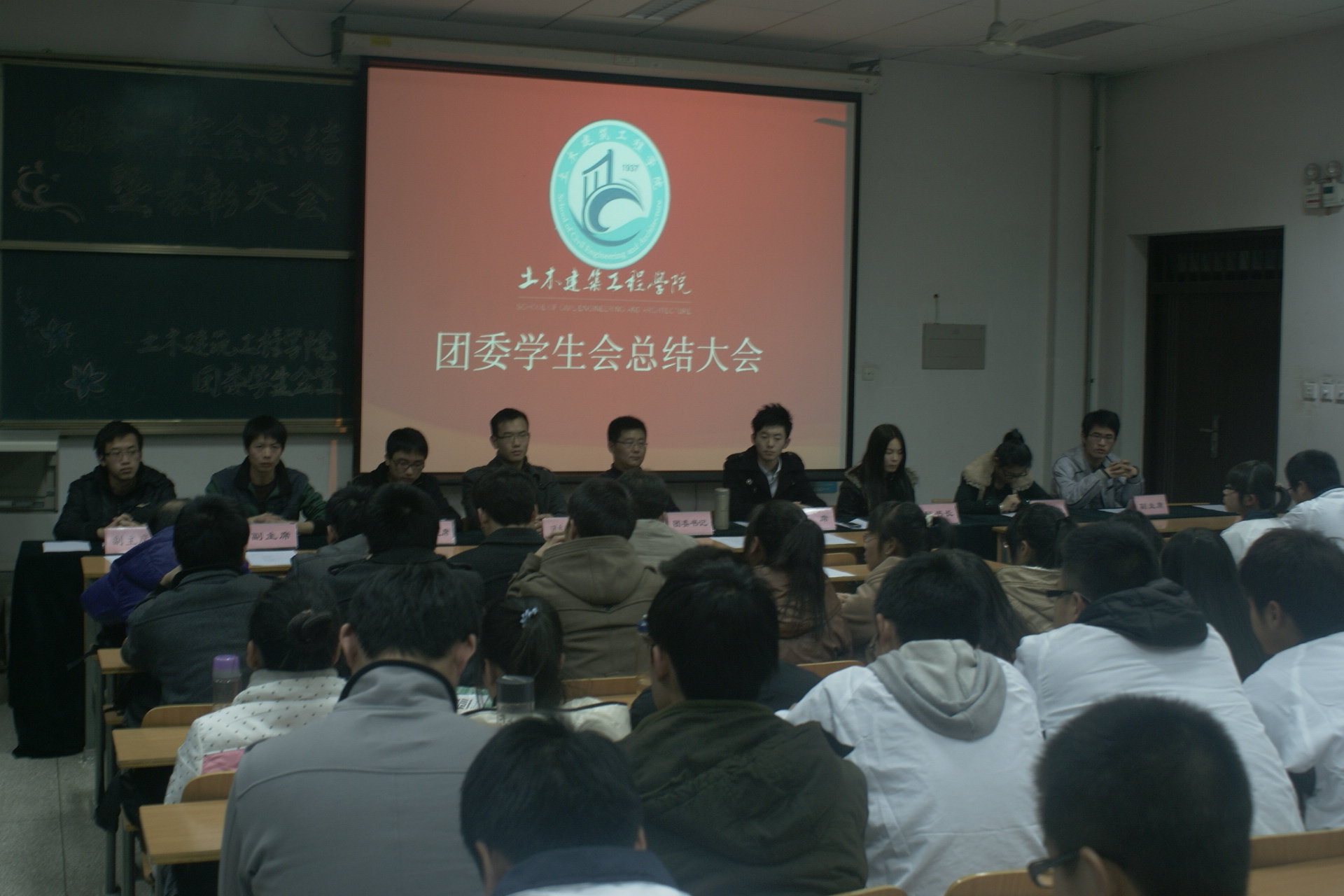 伴随着共青团团歌的奏响,大会正式拉开帷幕。会上,我院团委学生会各部门依次做了部门总结PPT演讲,不仅展示了部门组织参与的各项活动,而且充分反映了各部门的精神风貌,并在汇报部门工作的同时,显示了各部门2013年的计划。之后,王宗强老师宣读了关于表彰2012年土建学院团委学生会优秀学生干部、优秀干事的决定,并为他们颁发了证书。接着学生会主席梁彬详细汇报了学生会本年度的各项工作,并对明年的工作进行了展望。最后,王宗强老师做了总结性发言,他对我院2012年我院学生会取得的成绩和突破给予了高度评价和充分肯定,同时就明年的工作提出了建议。