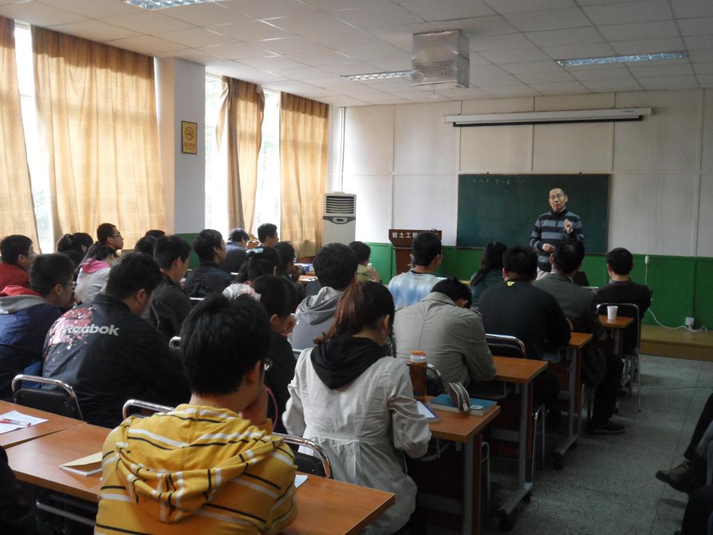 2011 年10月13日上午,国际著名土力学专家、土的亚塑性本构理论的创始人吴伟教授在我校岩土工程研究所会议室做了题为“土的亚塑性本构关系和局部化问题”的学术报告,会后开展了热烈深入的讨论。