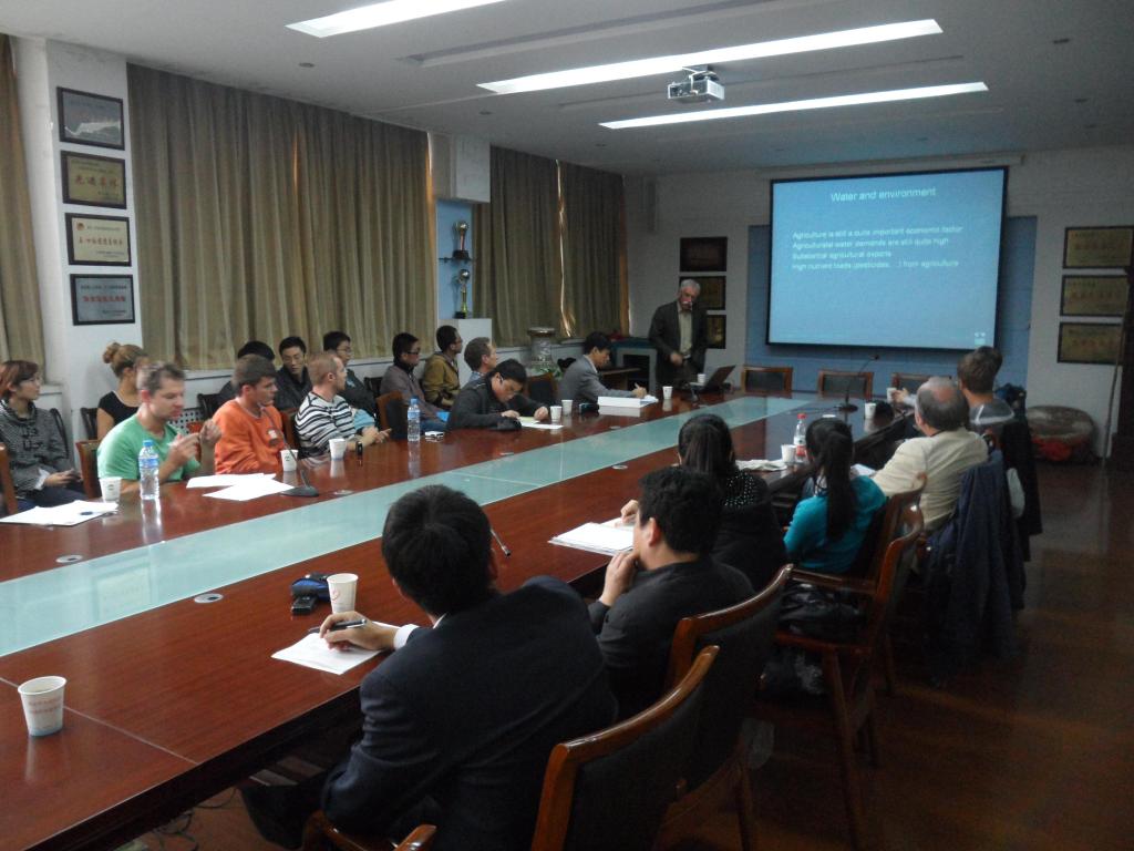2011 年10月12日下午,Nachtnebel 教授在水电学院展室做了题为“欧洲水资源管理策略现状”的学术报告,我校相近专业的教师和研究生约40多人参加了学术报告,并于会后进行了深入的交流与讨论。报告会前,访问团参观了我校岩土工程实验室,访问团对岩土工程学科一些自主研发的室验仪器产生了浓厚的兴趣。
