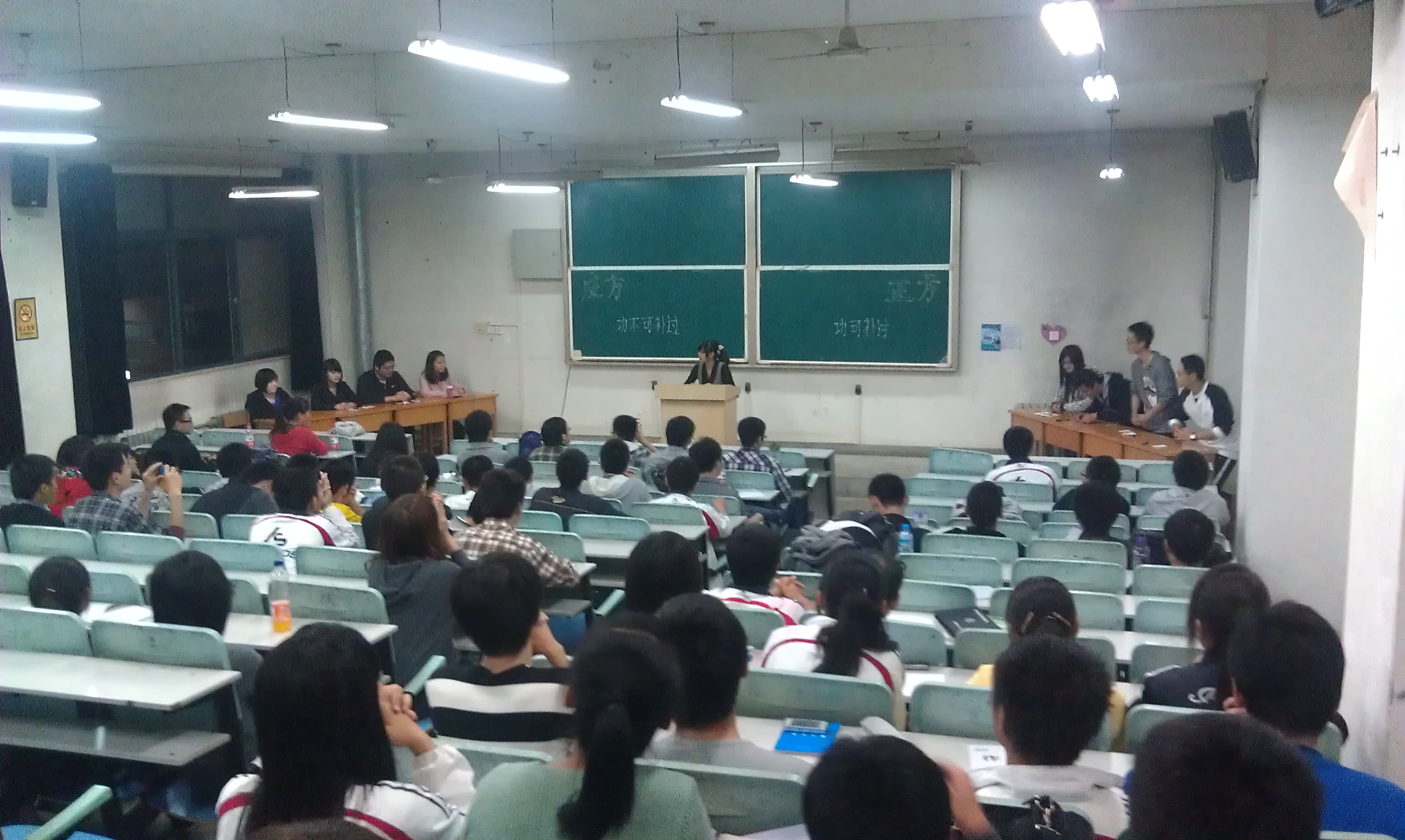 2011年10月10日晚7点,由土木学院辩论社主办、水电学院辩论社友情参与的友谊辩论赛于教八216圆满举行。