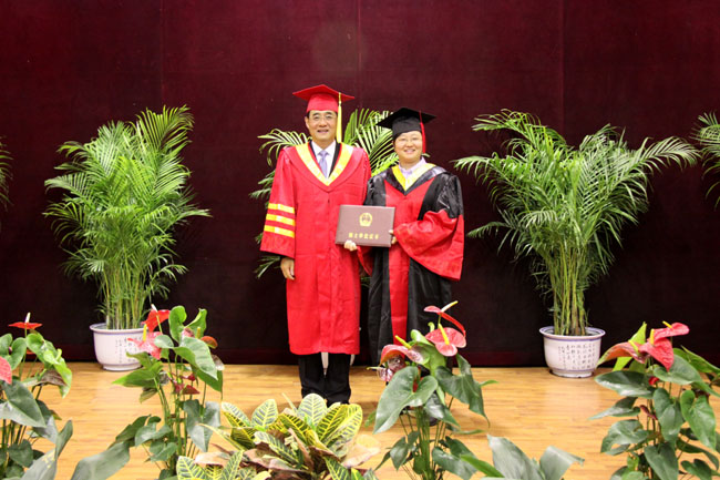 在欢乐的乐曲声中,校长、校学位委员会主席刘丁教授、校学位委员会副主席沈冰教授和副校长刘凯教授为参加学位授予仪式的300余名博士、硕士学位获得者代表颁发了学位证书。