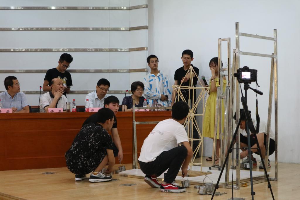 通过前期的宣传和征集报名,本次竞赛共有来自全校各学院的70余支代表队、200多人报名参加了比赛。本次竞赛的题目是“山地输电塔模型设计与制作”,采用竹材制作模型,旨在通过制作山地输电塔模型并进行多荷载工况的加载试验,解决山地输电塔实际建造过程中遇到的问题,增强山地输电塔的安全性和可靠性,探讨输电塔的受力特点、设计优化、施工技术等问题,选题具有重要的现实意义和工程针对性。经过紧张激烈的作品陈述、答辩和模型加载等环节,根据竞赛计分规则,最终评出了一二三等奖。