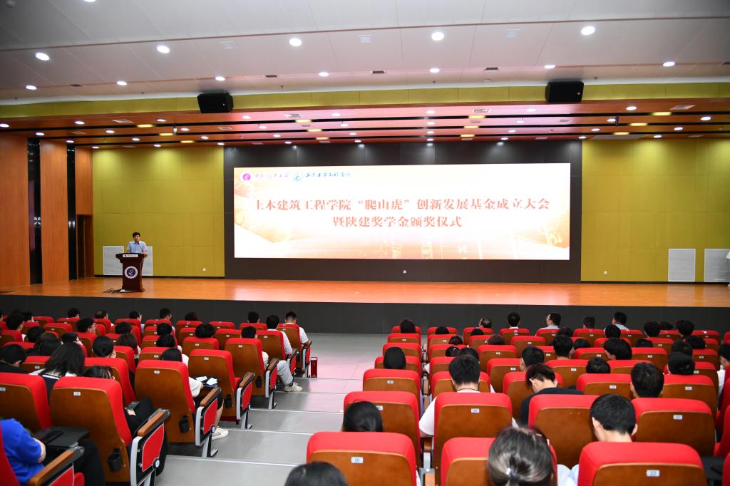 日前,“学史力行办实事,砥砺奋进谱新篇”土建学院建院10周年系列活动之“‘爬山虎’创新发展基金成立大会暨‘陕建奖学金’颁奖仪式”在曲江校区图书馆报告厅举办。