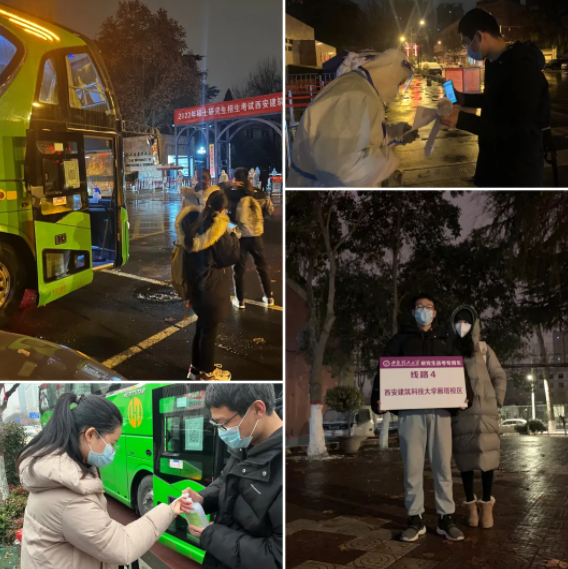 学院研考考生中,涉及金花校区前往曲江校区考场的考生101人,曲江校区前往金花校区考场的考生5人,外校考场的考生48人,分散在西安建筑科技大学雁塔校区、西安交通大学城市学院、西安交通大学雁塔校区、西安体育学院、西北大学桃园校区等多个考点。为降低和减少由于人员流动带来的新冠病毒传染风险,解决考生出行难题,学院按照学校要求,提前谋划、精心安排,最终圆满完成了所有考生的送考、接考任务!
