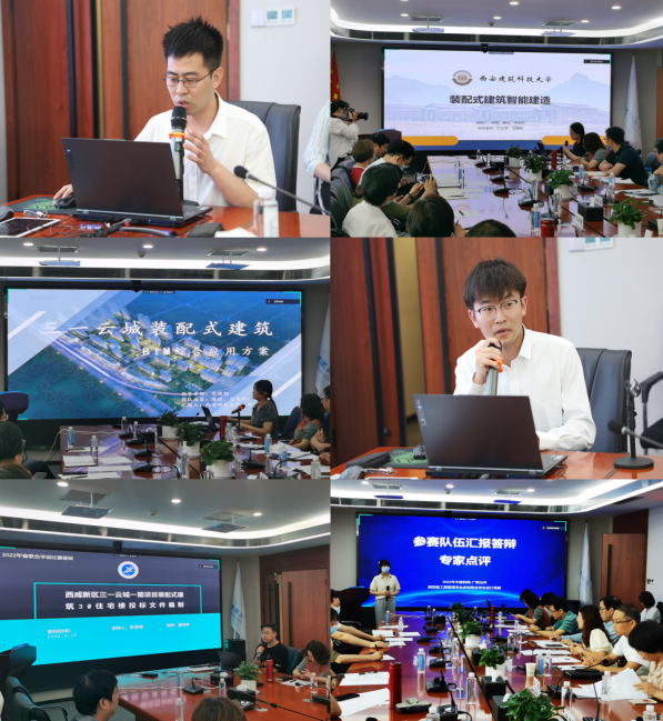 朱记伟代表承办单位对本次竞赛前期筹备情况做了详细介绍,王振军代表中建四局西北公司对参赛嘉宾、老师和学生表示热烈欢迎,杨彩丽介绍了企业科技创新情况并就后续支持高校专业建设做了发言。来自省内6所高校的9支参赛队代表对完成的联合毕业设计内容进行了汇报,答辩委员会专家对各参赛队伍汇报情况进行了精彩的点评。