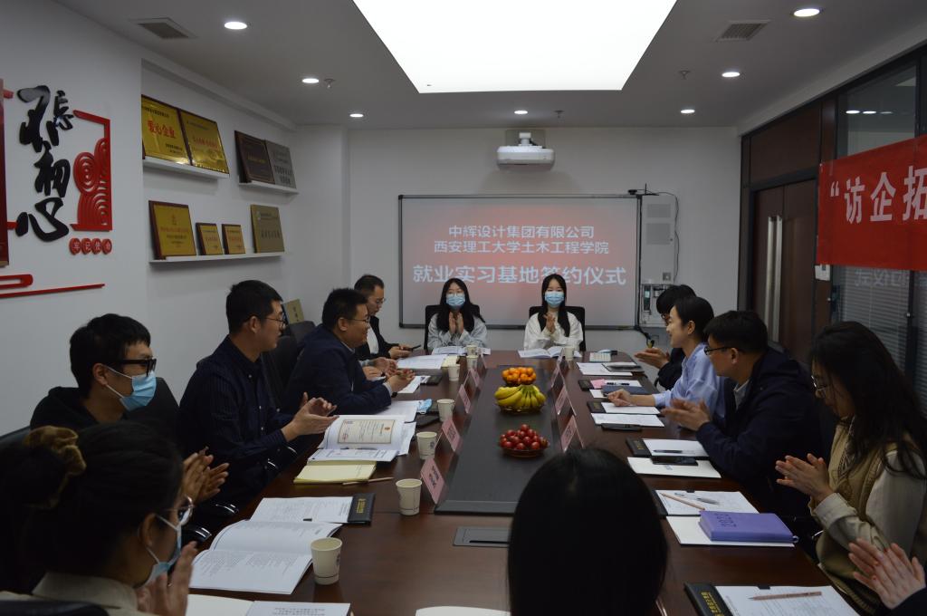 双方围绕人才需求、平台建设、联合培养、实习实践等内容进行交流。最后,双方签订共建大学生就业实习基地协议书并一起为共建基地揭牌。