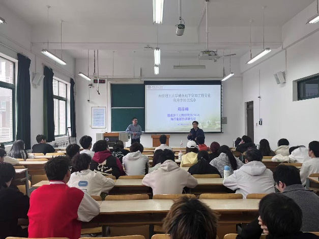 活动过程中,周泽峰以平实而真挚的语言,回顾了在西安理工大学的求学时光,讲述了从本科学习到海外科研的成长历程。他结合自身经历,鼓励学弟学妹们打好数学、力学等专业基础,保持好奇心和探索精神,勇于面对挑战。在介绍专业发展时,周泽峰重点分享了岩土工程尤其是海洋岩土工程在国际上的前沿动态与发展趋势。他指出,随着全球能源结构转型和海洋经济快速发展,海洋能源开发已成为国际工程领域的热点,岩土工程在其中扮演着至关重要的角色,城市地下空间工程专业的学生在未来大有可为。