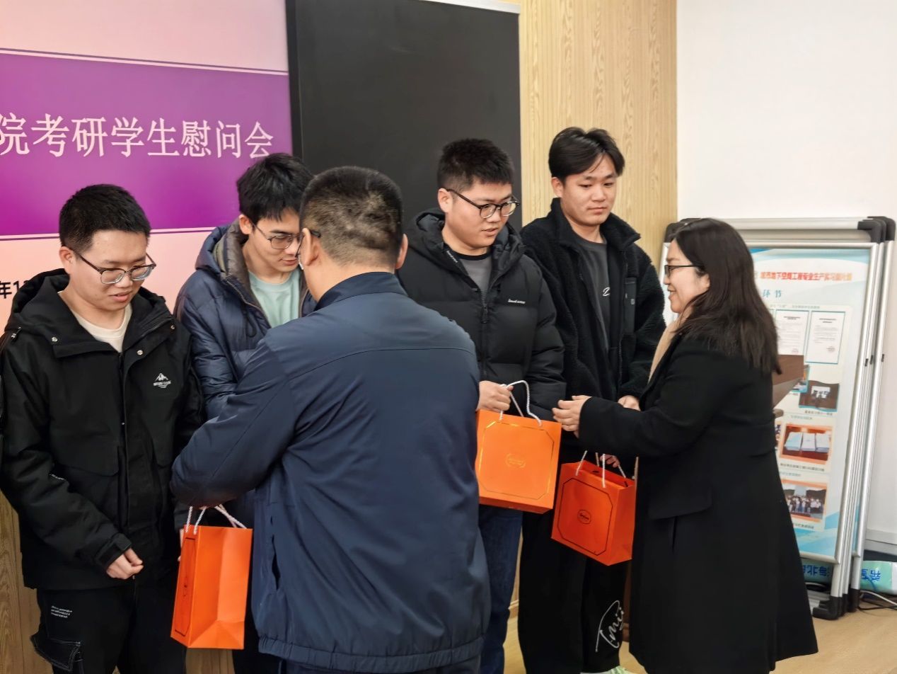2025年12月17日,bat365中文官方网站在教四318会议室举行考研学生慰问活动。院长赵钦、党委副书记兼副院长王宗强、副院长薛海斌,及毕业班辅导员孙东宇、刘宇航共同参与,为考研学生代表送上专属关怀,用温暖陪伴学子冲刺关键征程。