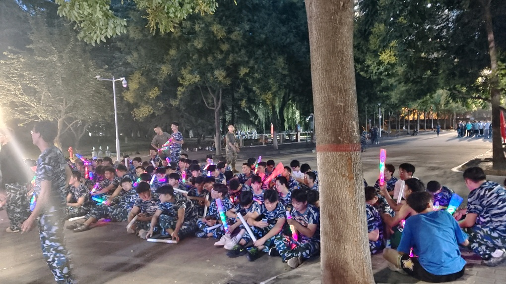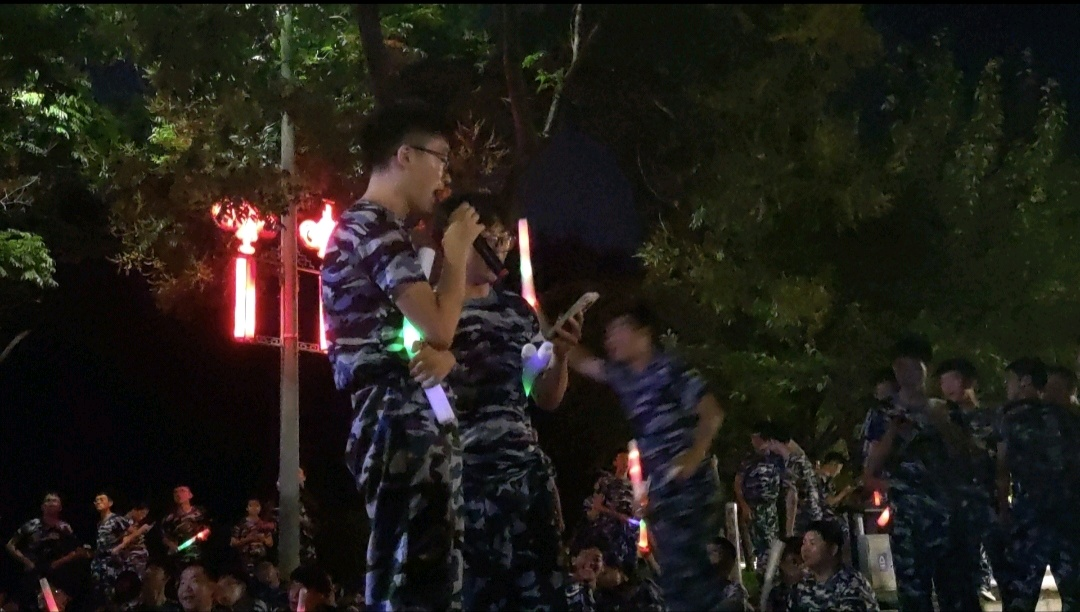 才艺表演环节,“土院男团”联合教官激情演唱,唱出自己的激动与喜悦;西北麦霸唱着“抱一抱呀么抱一抱”带动训练场上的气氛;教官也给大家表演《军中姐妹》的舞蹈;令人难忘的还有我们导员孙东宇老师特地准备的舞蹈,整个过程中,我们十二连全体同学一直保持着兴奋状态。