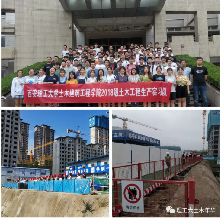 实习队充分利用我校基建处在建项目和曲江三期工地,提出了“轮岗深入实习”的实习策略:将土木181~184四个班的101名学生分成两个大组,分别在金花与曲江两个工地实习一周后,下一周两个组调换工地。