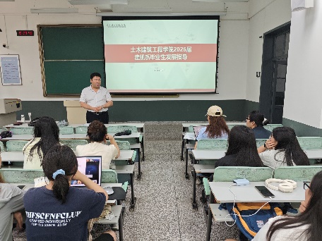 会议第一阶段,学院党委副书记兼副院长王宗强立足学院往届毕业生去向数据,结合学院现实情况,从就业形势、求职就业规划、相关就业政策等方面为同学们作了就业指导。副院长胡义锋详细介绍了bat365中文官方网站、研究生的招录与培养,并根据研究生录取数据为同学们作了考研动员。最后,院长赵钦做了总结讲话,她与同学们探讨了土木行业今年面临的挑战和转型现状,强调了提前规划和积极行动对每位同学的重要性,希望同学们综合分析自身条件,不管就业还是考研,都要全力以赴,用脚踏实地的奋进之姿促进实现各自的人生价值。