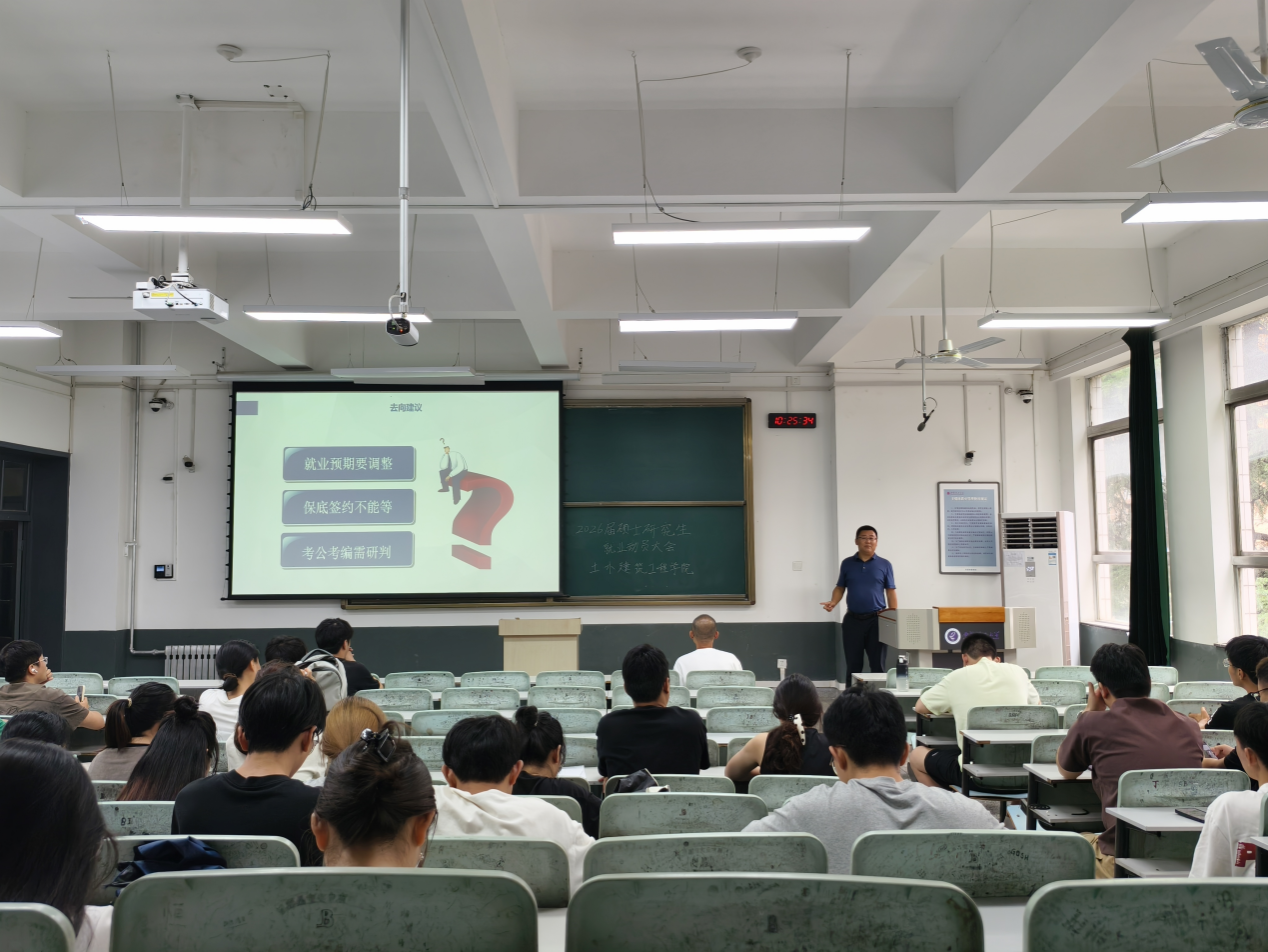 为帮助毕业生明确就业方向、转变就业观念,7月9日上午,bat365中文官方网站在金花校区教6-203教室召开2026届硕士研究生就业动员大会。学院党委副书记兼副院长王宗强、研究生辅导员陈浩哲以及2026届硕士研究生参加了此次会议。
