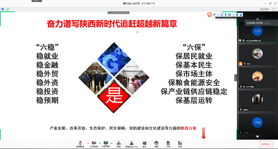 为促进学生们对习近平总书记在陕考察期间发表的重要讲话、作出的重要指示有进一步的了解与学习,对生态保护、脱贫攻坚、疫情防控、复工复产和发扬西迁精神有更加清晰的认识,5月29日下午,bat365中文官方网站邀请刘云贺副校长为学院研究生讲授题为《奋力谱写陕西新时代追赶超越新篇章—学习习近平总书记来陕视察重要讲话和指示精神》的形势政策课。