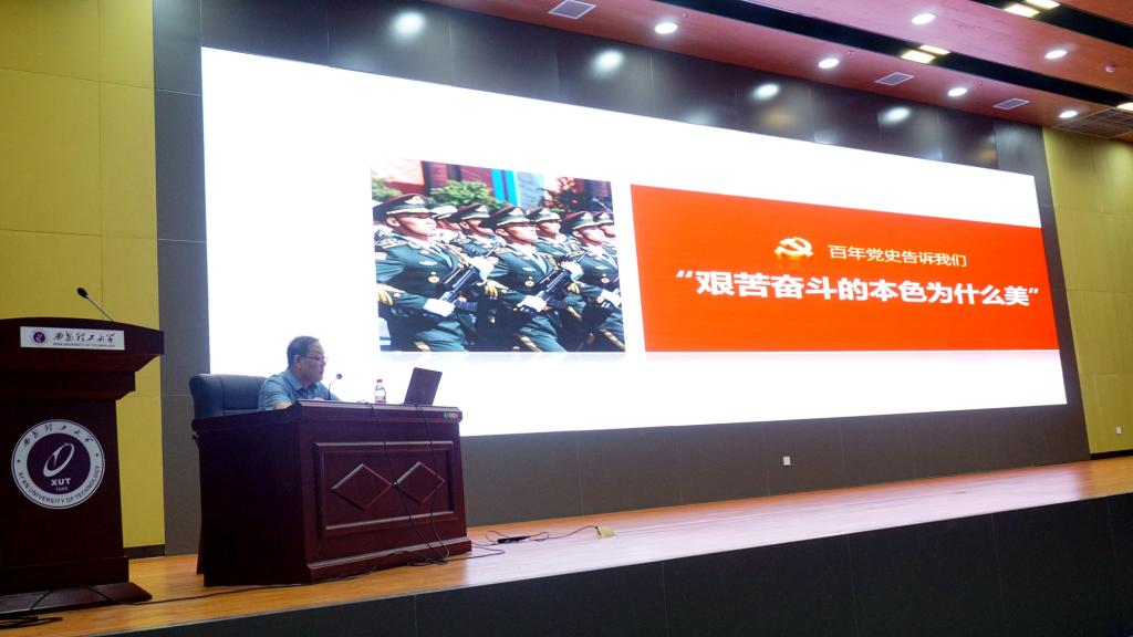 波澜壮阔,历久弥坚。参观完毕,全院师生党员严格按照学校疫情防控要求,在曲江图书馆报告厅聆听了学院党委书记王青耀题为《百年党史告诉我们“六个为什么”》的党史学习教育报告宣讲。他以时间为主线,从共产党的成立背景入手,以“中国共产党为什么能”“马克思主义为什么行”“中国特色社会主义为什么好”“信仰的味道为什么甜”“艰苦奋斗的本色为什么美”“党的靠山和底气为什么强”六个方面,历数了中国共产党从救国—兴国—富国—强国所做出的伟大成就,展现了我们党百年来的光辉历程。同时,他勉励同学们坚定理想信念,矢志砥砺奋斗,以习近平总书记4月19日在清华大学师生座谈会上的讲话为指引,爱国爱民、锤炼品德、勇于创新、实学实干,不断增强使命担当,为实现中华民族伟大复兴贡献青春力量。