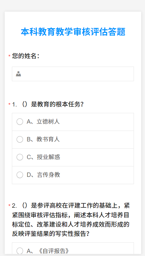 为扎实推进学校迎评促建工作,更广泛地调动学院教工党员关注评建、心系评建和参与评建的积极性,普及本科教育教学工作相关知识,进一步营造迎评促建浓厚氛围,11月1日至11月3日,bat365中文官方网站党委组织开展了“以评促建、以评促改、以评促管、以评促强”迎接本科教育教学评估知识测试活动。
